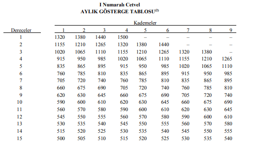 Aylık: 657 sayılı kanunun 43. Maddesinde yer alan tabloda belirtilmiş gösterge rakamlarının memur maaş katsayısı ile çarpılması suretiyle hesaplanır.